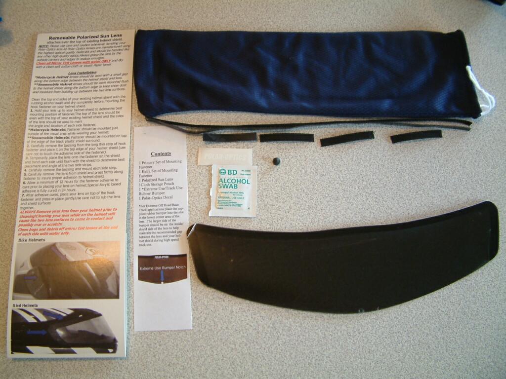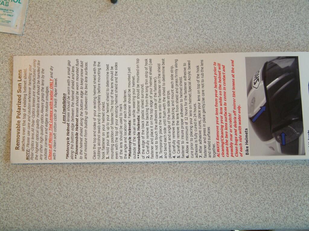 The install process is relatively simple. Clean the existing visor using the supplied cleansing wipes. Shoei is a screen which needs particular attention as they are coated quite heavily to keep bugs and gunk off. From there, he installed a strip of custom developed 3M hook & loop across the top and sides of the windscreen. Normally this should cure overnight before riding, but lacking the time we went with it immediately. Now, if you think this is just plain ole velcro, it's not. Polar Optics tried numerous brands of hook/loop fasteners, but they would not hold up to the extreme wind forces produced by motorcycle racing. The fastening system with this windscreen is an honest to goodness custom design.