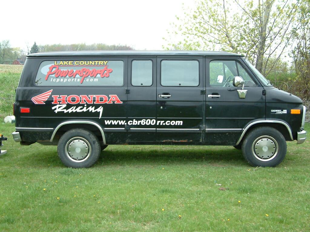 That's what I told Mike from Grafix Systems when I looked at my dull, drab new (used) tow van. My intention for the vehicle is specific. I use it to haul my bikes, and tow the trailer to the tracks. With that in mind, why not become a bit of a mobile promotion for my sponsors and cause?