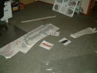 Putting the graphics on was a bit of a challenge, but requires little more than a squirt bottle with 2-3 drops of dish soap in it and then filled with water, a few rags, a razor blade, some tape, good lighting and most importantly PATIENCE. Since I'm lacking the most important piece, I employed my wife Jennifer to install the graphics.