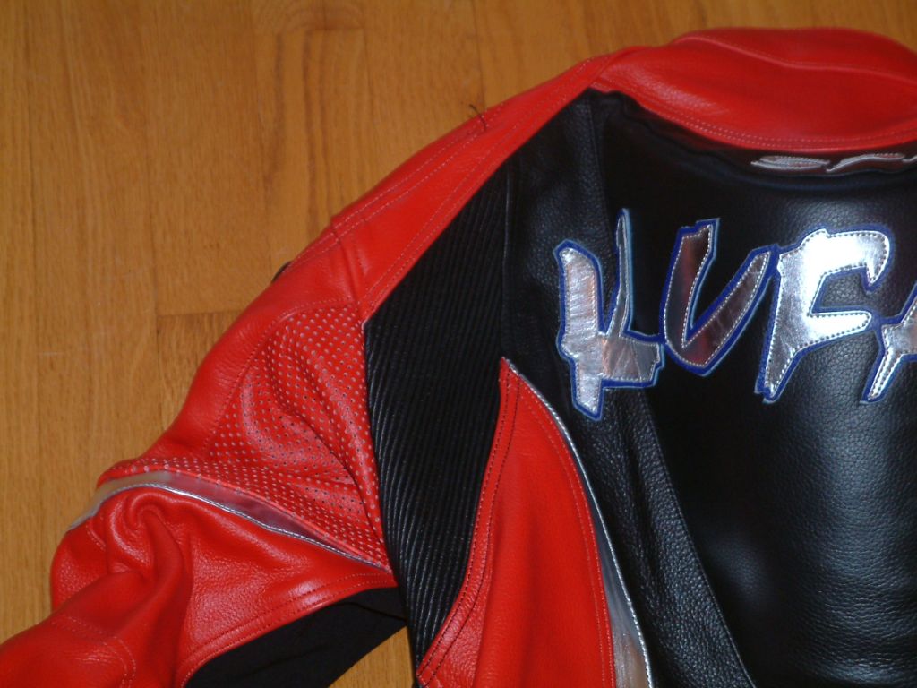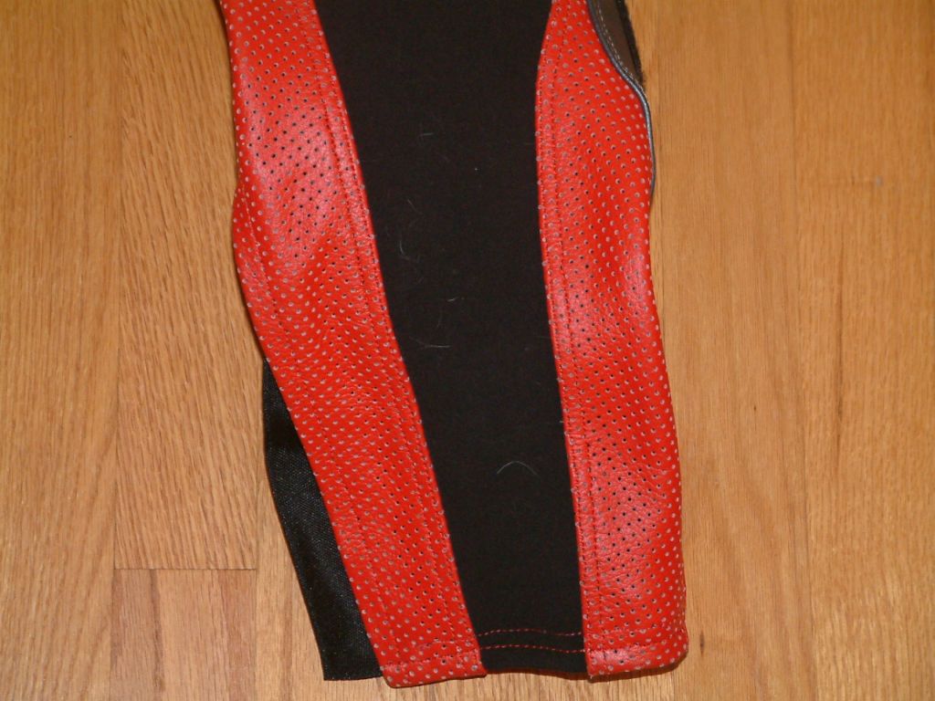 These are pics of the stretch panels as well as the extra layers of leather on the butt. The butt felt weird since there were extra layers of leather there, but in ALL my other suits, I have patches on the ass since I've gone through there from crashes.